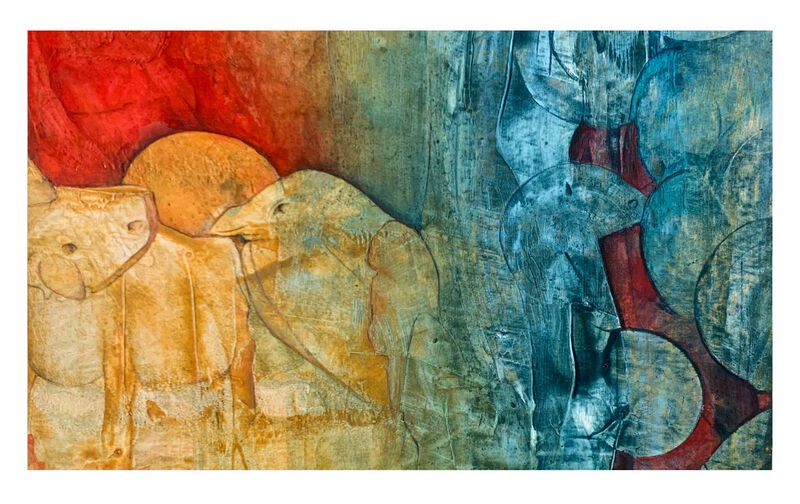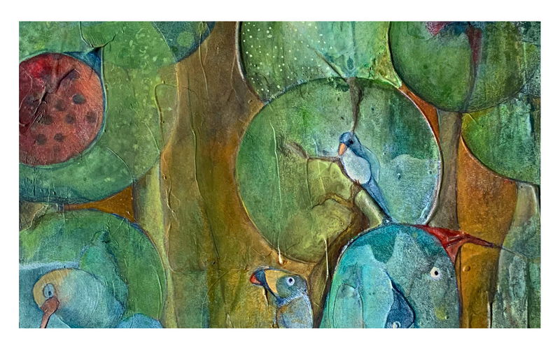 Erste Farbspuren und Formen entstehen und lösen Assoziationen, Empfindungen und Impulse aus. Ich komme in einen Dialog: mit dem, was sich zeigt, und mit dem, was in mir darauf antwortet. Dabei begegne ich etwas Eigenem, das zugleich unerwartet und doch vertraut ist – eine leise, mystische Reise mit unbekanntem Ziel.